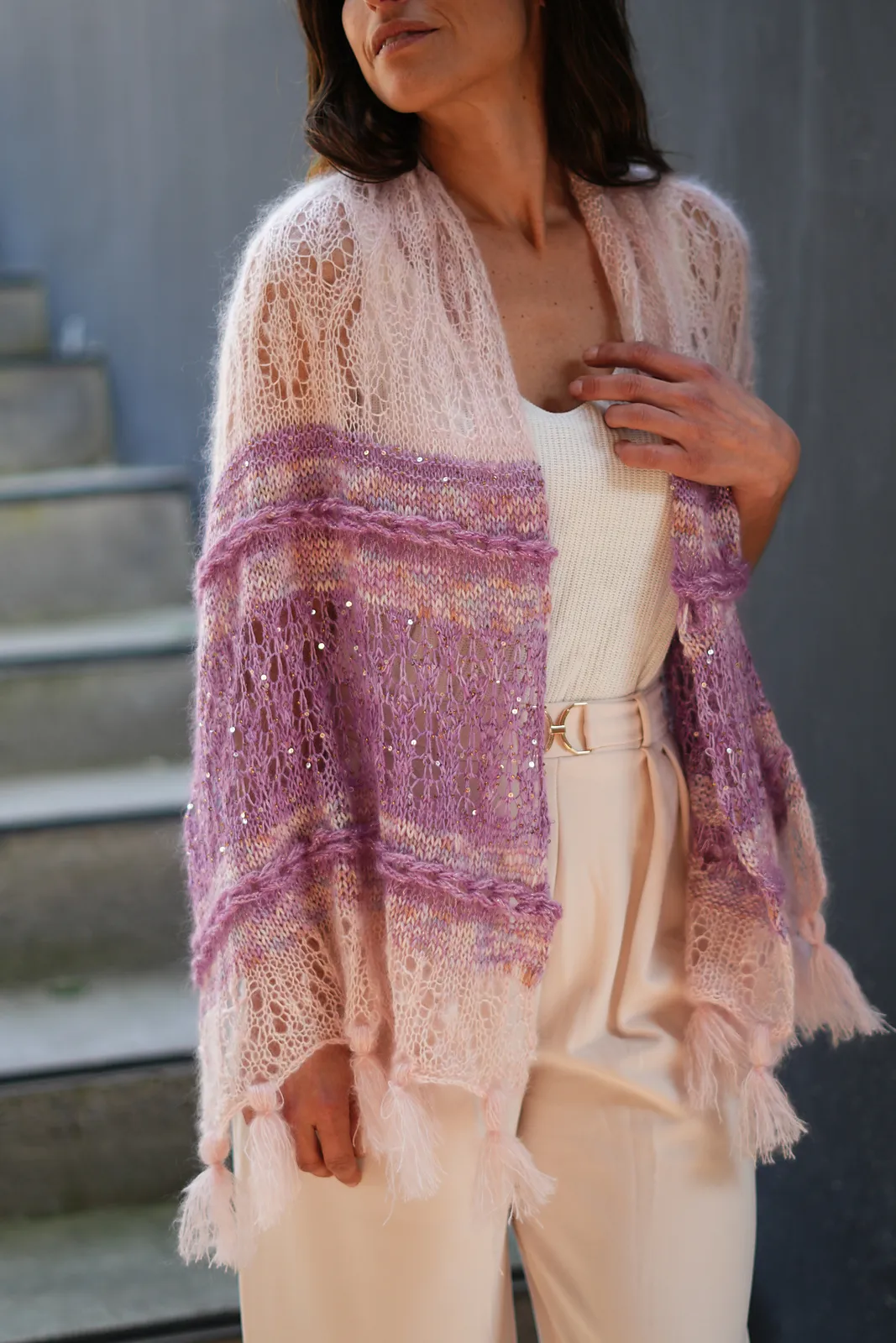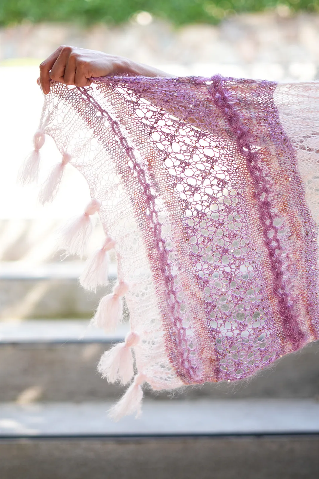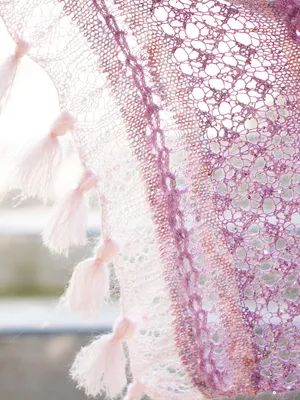 The highlight of this design is the braid made with an i-cord, a unique detail that will catch everyone’s attention and make your shawl truly special. To finish, tassels at the ends add a playful and elegant touch to your piece.
