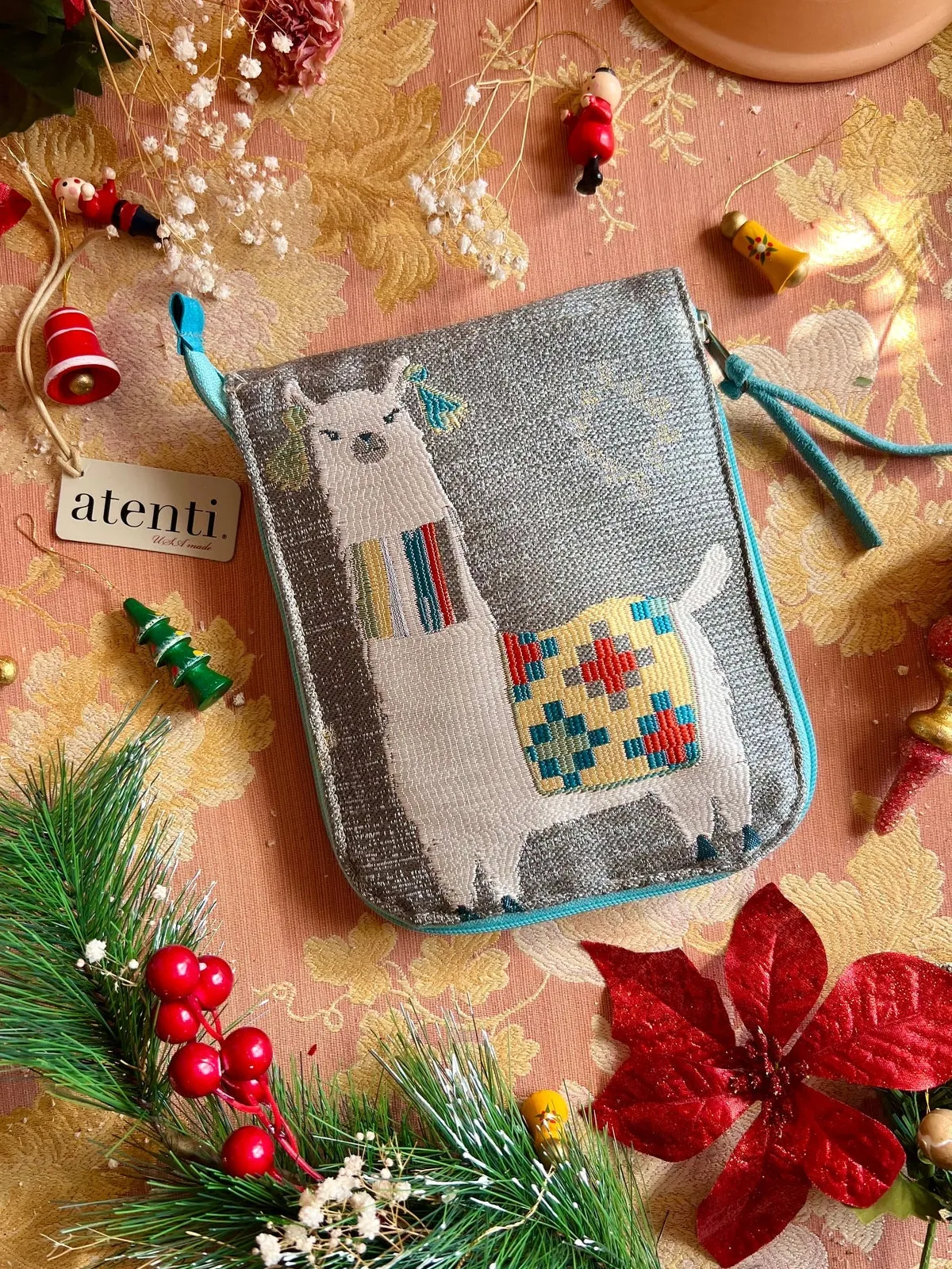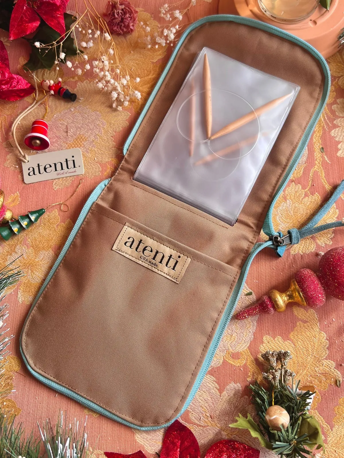 Fun and trendy llamas woven into a jacquard. A practical organizer and storage for your circular needles in distinctive Atenti fabrics. An all around zipper closure protects an interchangeable plastic booklet insert with 12 clear pockets. Additional insert booklets available.
