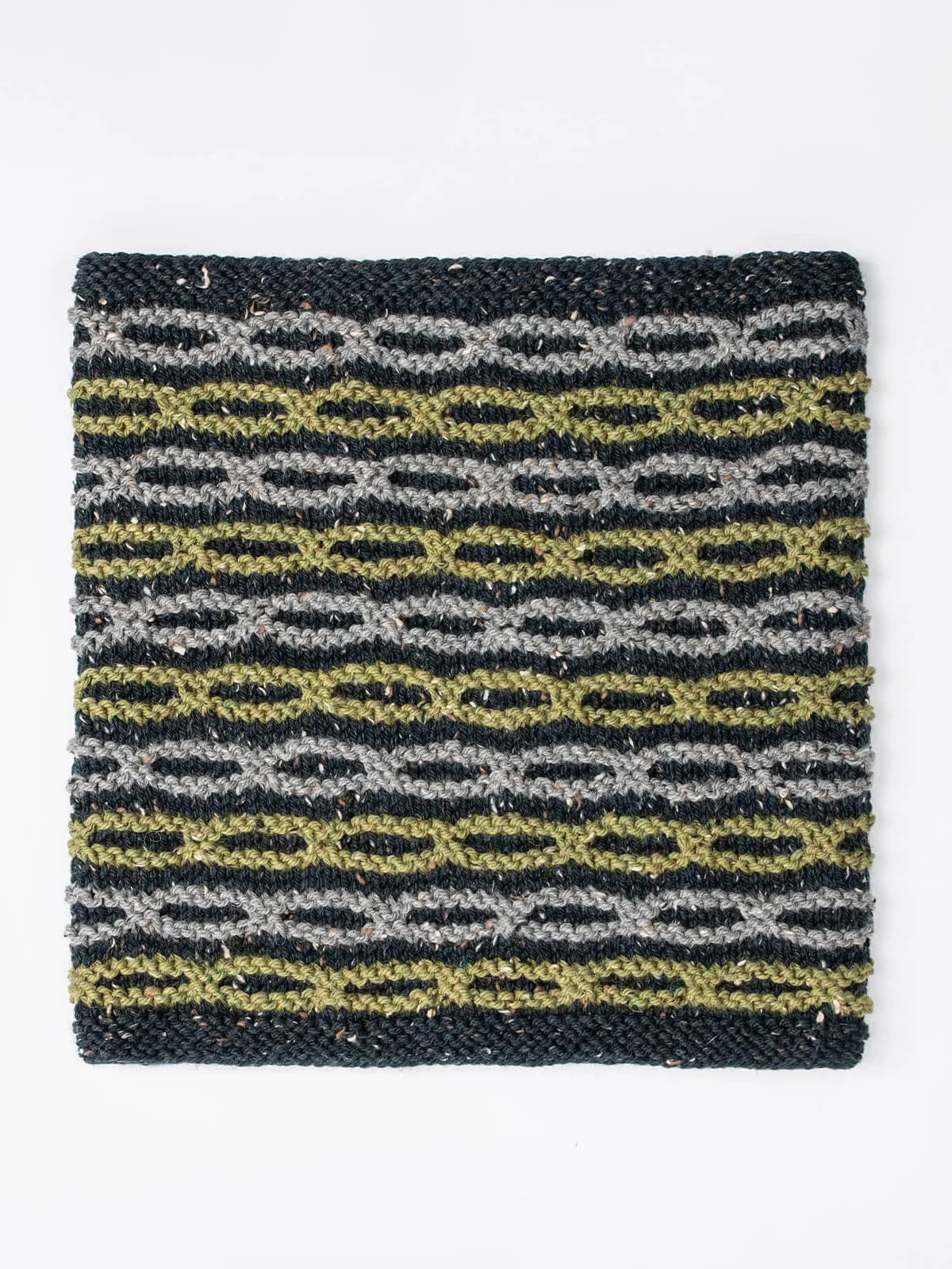 Knit in the round with Woolstok Tweed and using a fun chain stitch, this colorful and warm cowl is a quick knit. Free pattern download. (See color swatches below).