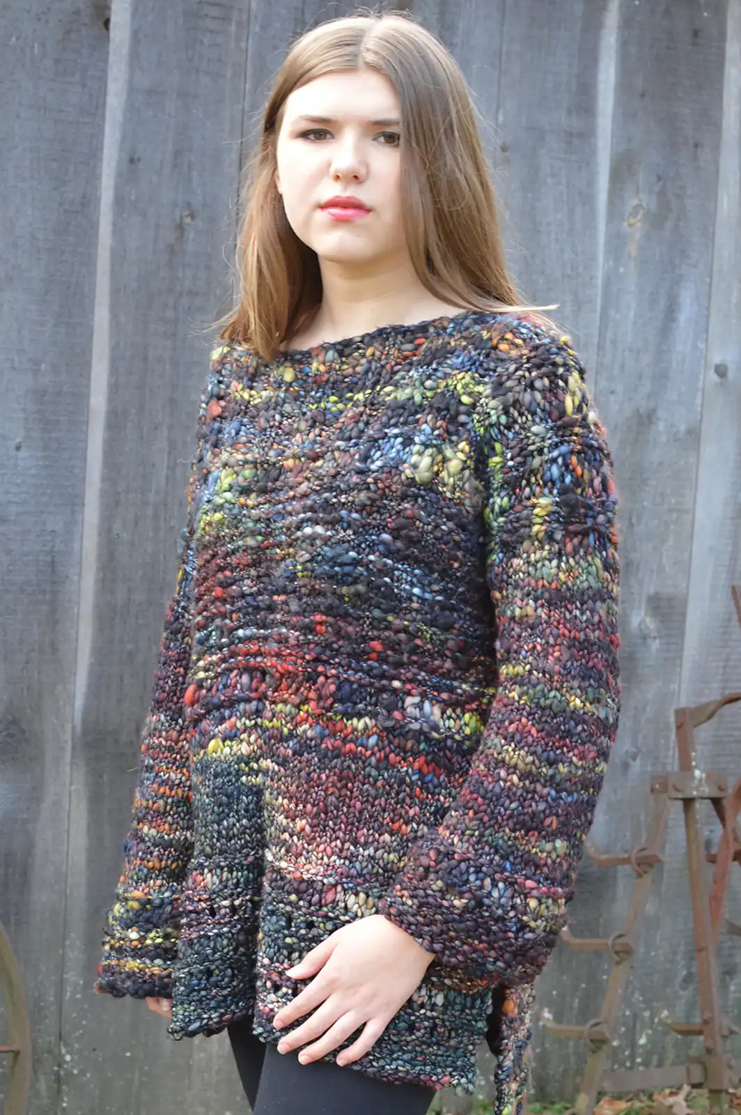 SIZES: Womens Chest Circumference: 32-34 (36-40, 42-46, 48-52)”/81-86.5 (91.5-101.5, 107-117, 122-132)cm. Note: This sweater is supposed to be oversized and worn loose!
