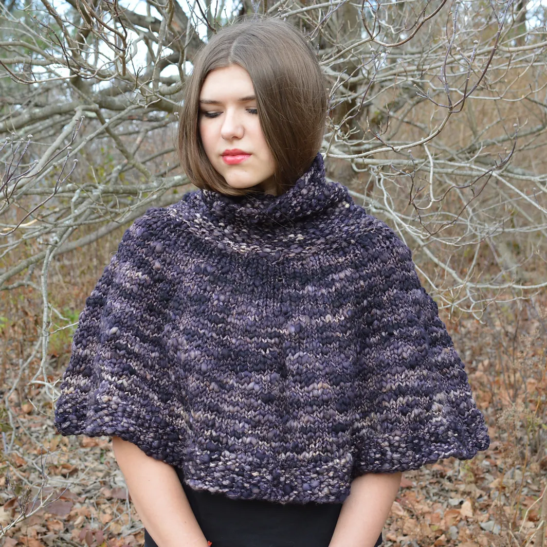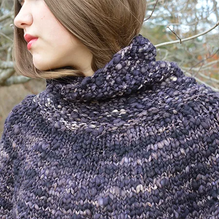 Cozy up in a warm cocoon of soft, bulky Caracol wool. The Dyne Poncho is a quick and easy knit, a great weekend project! The circle yoke is a great way to knit a top-down, seamless sweater or poncho! The length is perfect for keeping your body warm, while still leaving your arms free to tackle important tasks, such as knitting and yarn shopping! Designer Heather Dixon.
