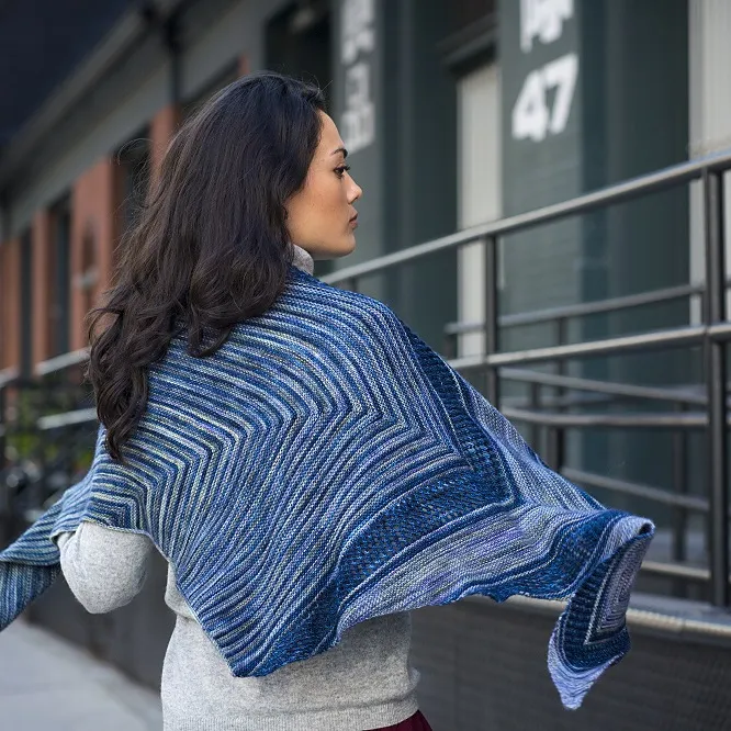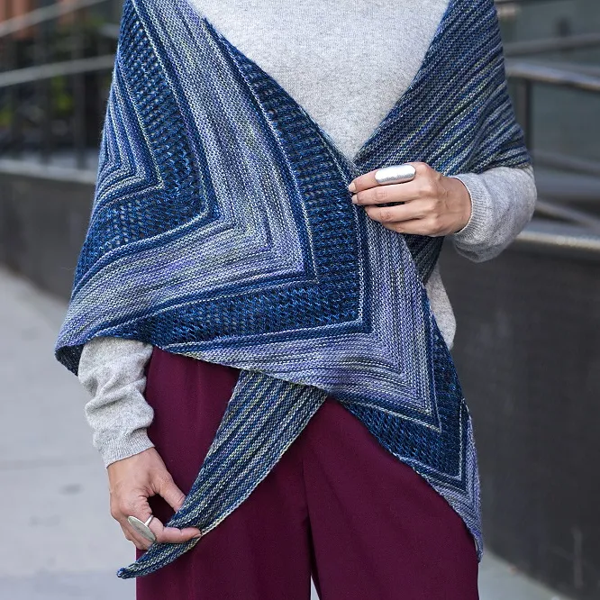 Combine garter and lace with two complementary colors of beautiful Malabrigo yarn and you can knit up this oversized shawl!