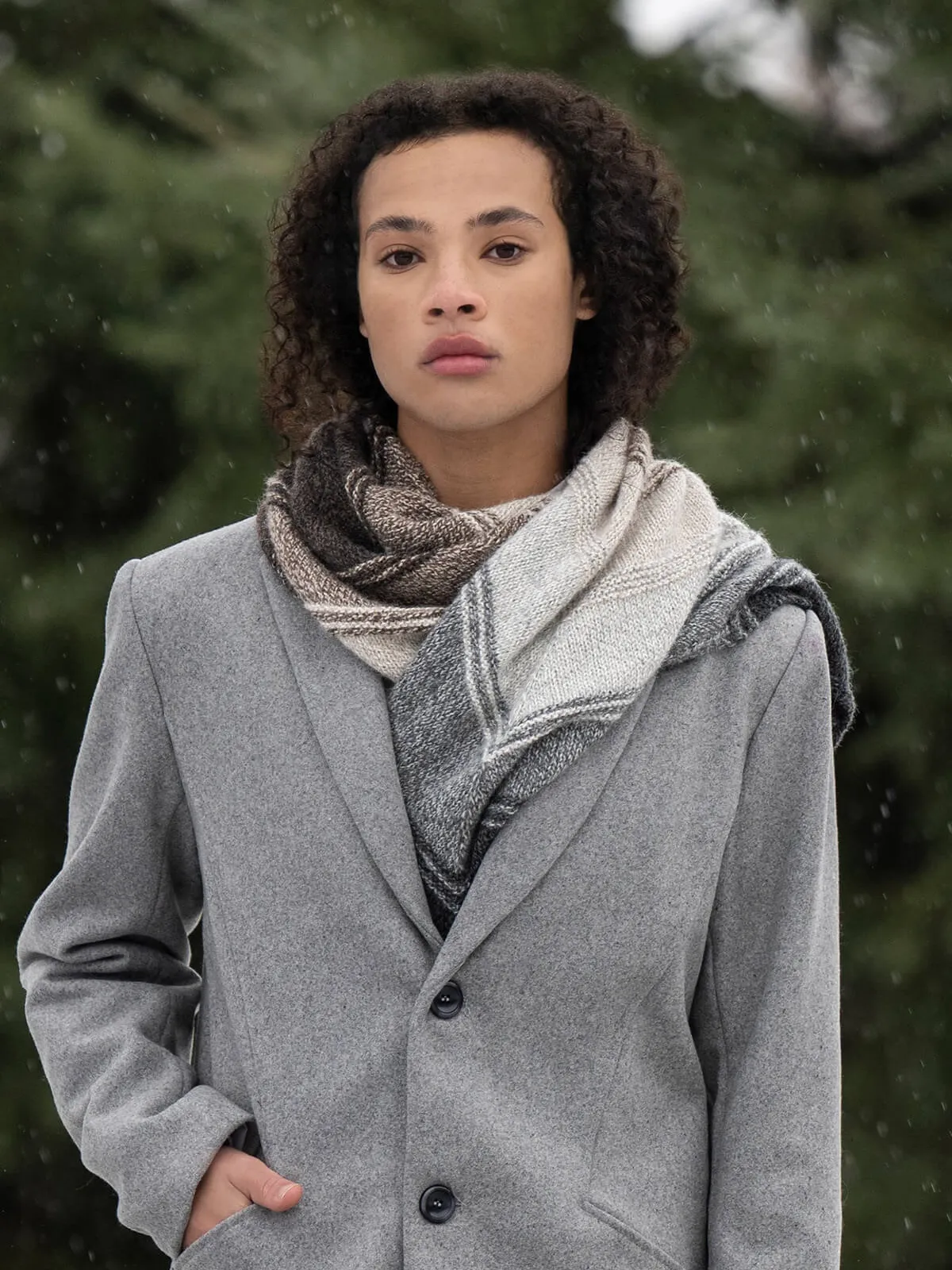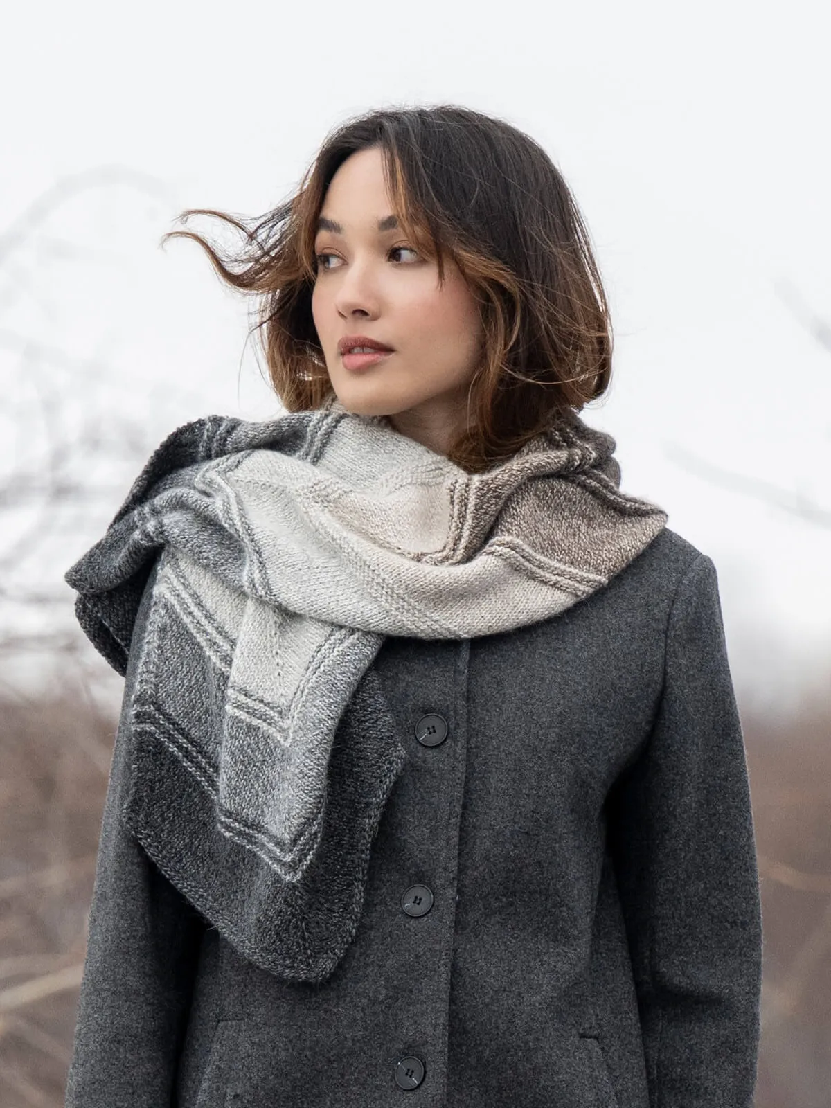 Knit using Baby Alpaca's new six marled colors (see below), this unisex wrap is perfect for those chilly days. Knit in the round from the center out, then divided into two halves worked flat making this the ideal advanced beginner project.
